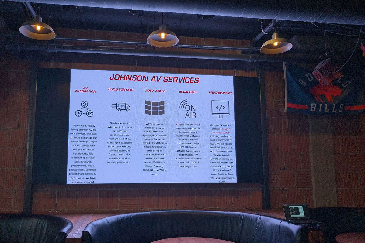Need professional support for your commercial AV projects? Our team—installers, technicians, programmers, and field engineers—is ready. Benefit from our competitive pricing, flexible scheduling, transparent estimates, and our 12-month workmanship warranty. Serving Toronto, Ottawa, eastern & southern Ontario!
